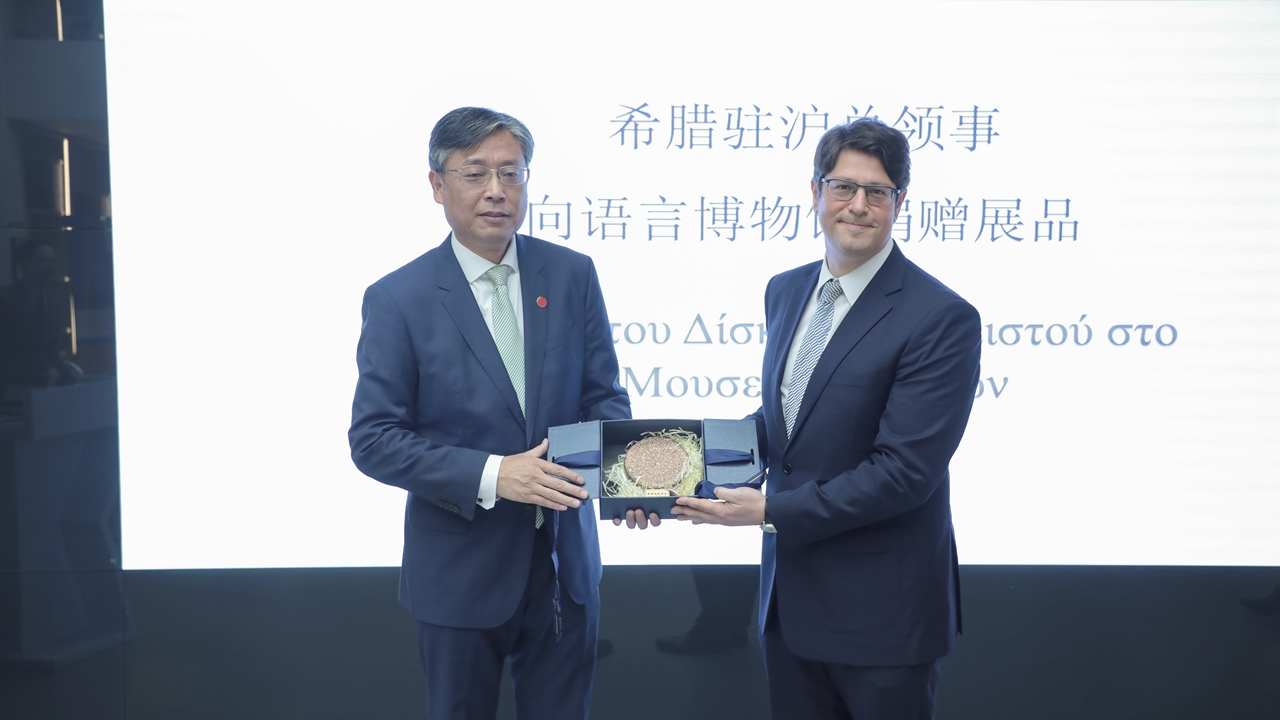 31 березня пан Коніакос Василіос, Генеральний консул Грецької Республіки у Шанхаї, відвідав Шанхайський Університет Іноземних Мов (ШУІМ) та подарував Музею мов ШУІМ копію відомого диска Файстос - репрезентативну культурну реліквію давньогрецької цивілізації.